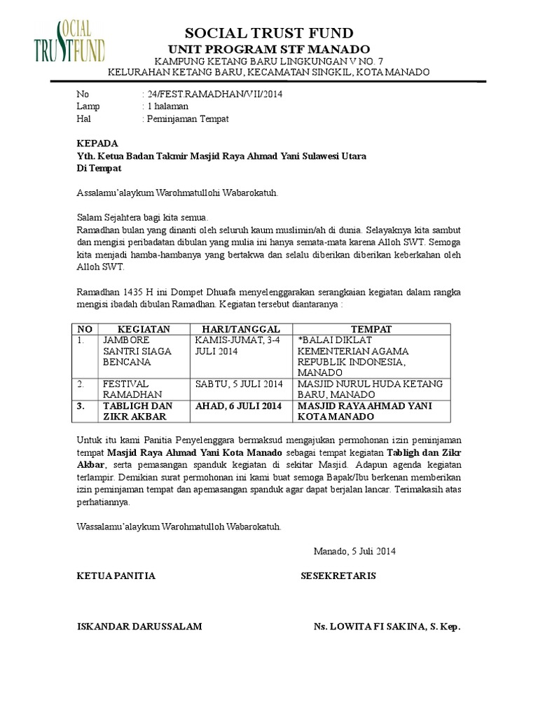 Contoh Surat Permohonan Dana Maulid Nabi Kumpulan Surat Penting