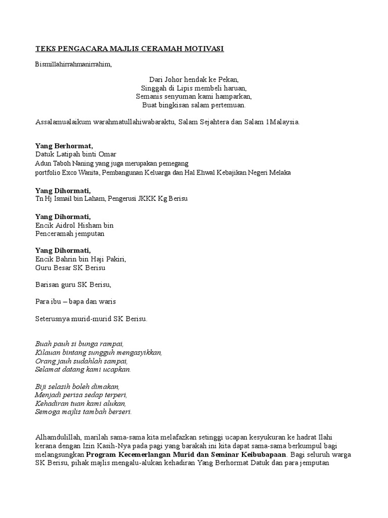 Doc Teks Ucapan Pengerusi Majlis Ceramah Agama Docx Dr Muhammad Nur Azimi Azizan Academia Edu
