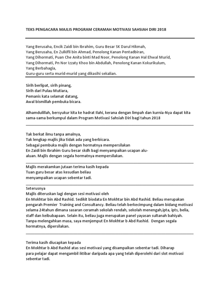 Teks Pengacara Majlis Ceramah Motivasi Tahun 6 2015