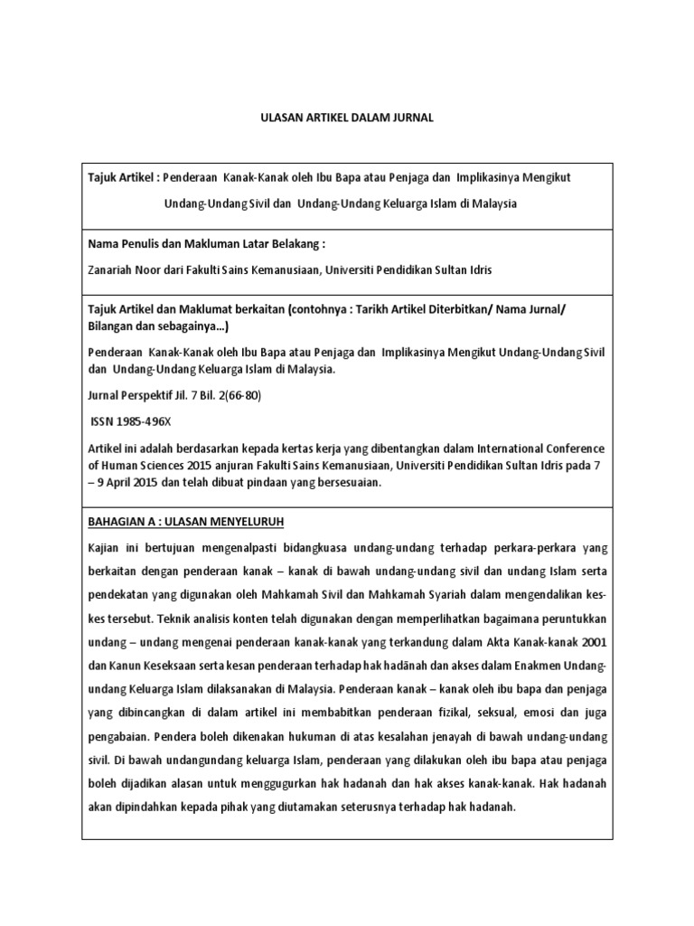 Contoh Ulasan Artikel Dalam Jurnal Update 22 Oct 20013