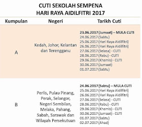 Sekolah Cuti Ganti Sempena Hari Raya Aidilfitri 2017 Blog Ibu Mifzal