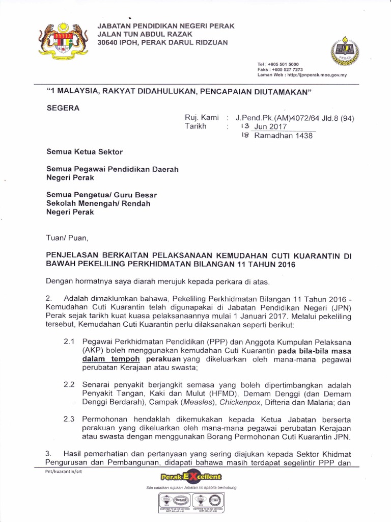 Info Kemudahan Cuti Kuarantin Bagi Jabatan Perkhidmatan Awam Facebook
