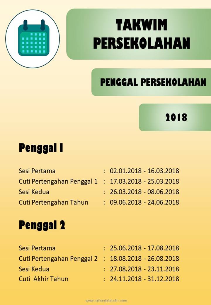 Takwim Persekolahan 2018 Rasmi Kpm Pendidik2u