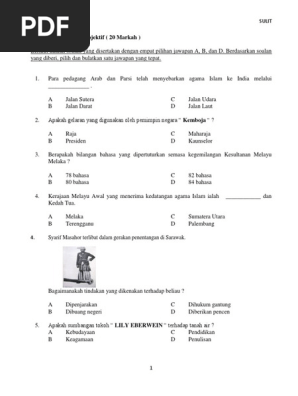 Bahagian A Soalan Objektif 20 Markah Sejarah Tahun 5 Sulit