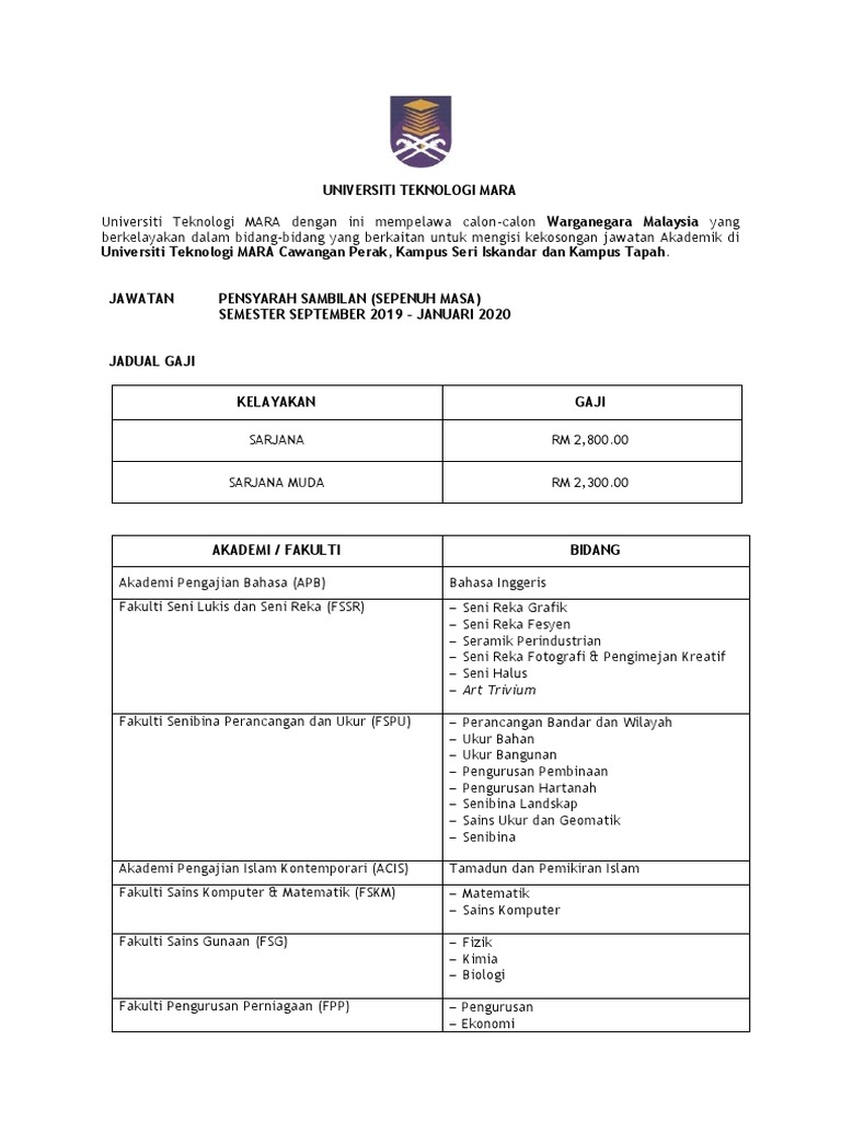 Jawatan Kosong Di Universiti Teknologi Mara Uitm Perak 9 Jun 2020 Banyak Jawatan