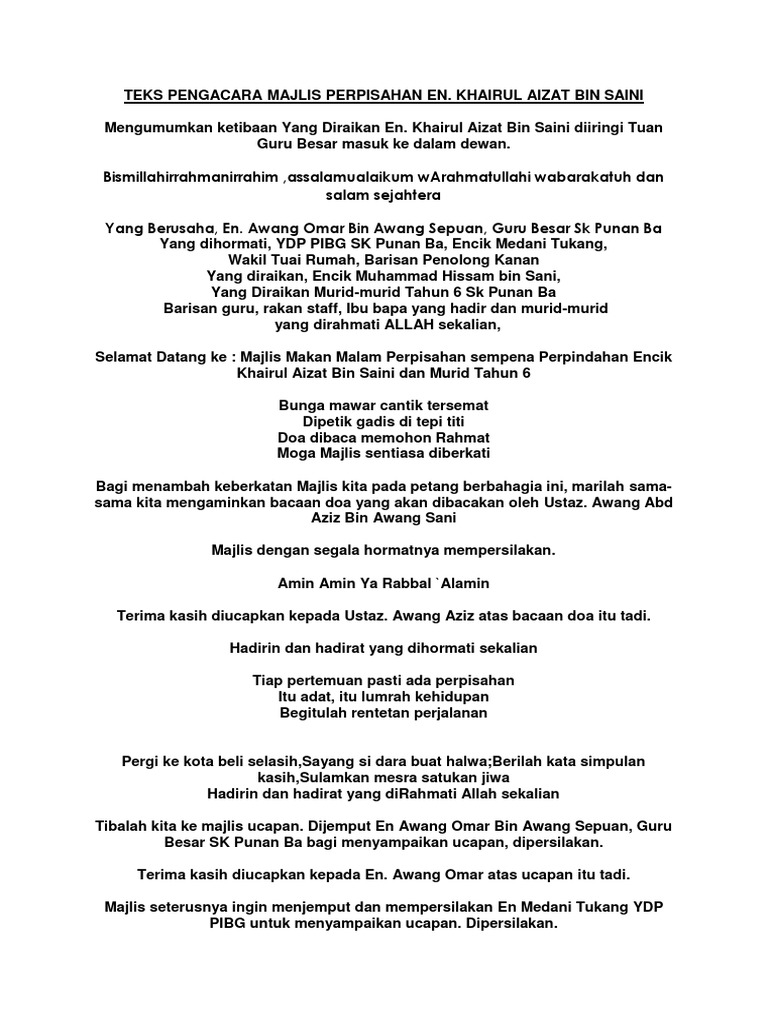 Teks Doa Majlis Persaraan Guru Docx