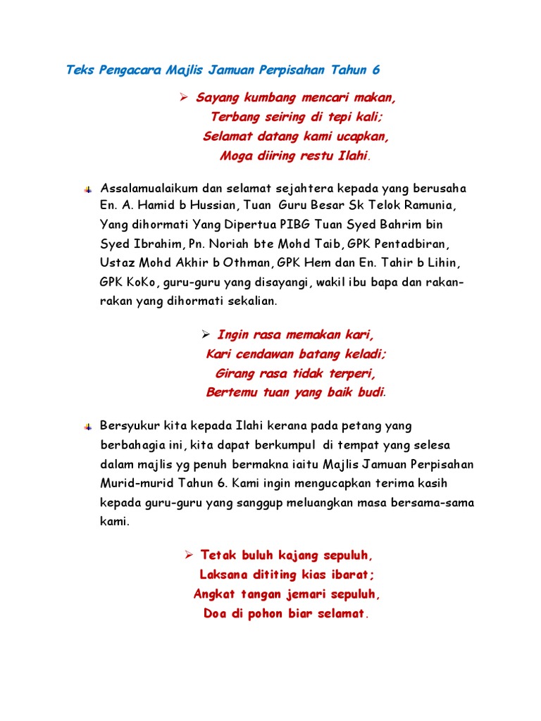 86877923 Teks Pengacara Majlis Jamuan An Tahun 6