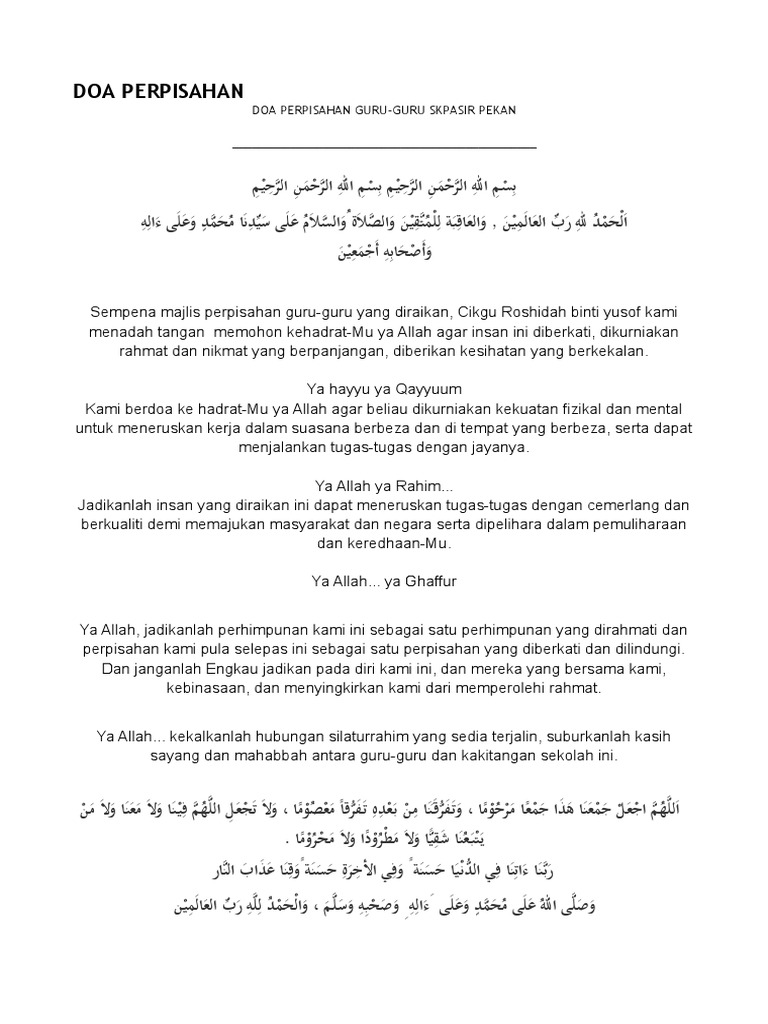 Teks Doa Majlis Persaraan Guru Docx