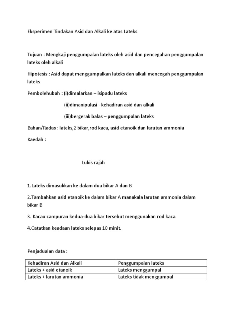 Eksperimen Tindakan Asid Dan Alkali Ke Atas Lateks