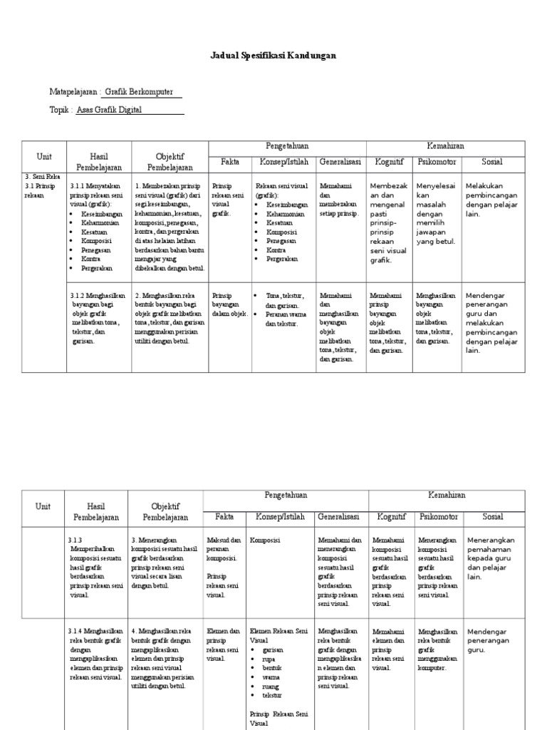 Jadual Spesifikasi Kandungan