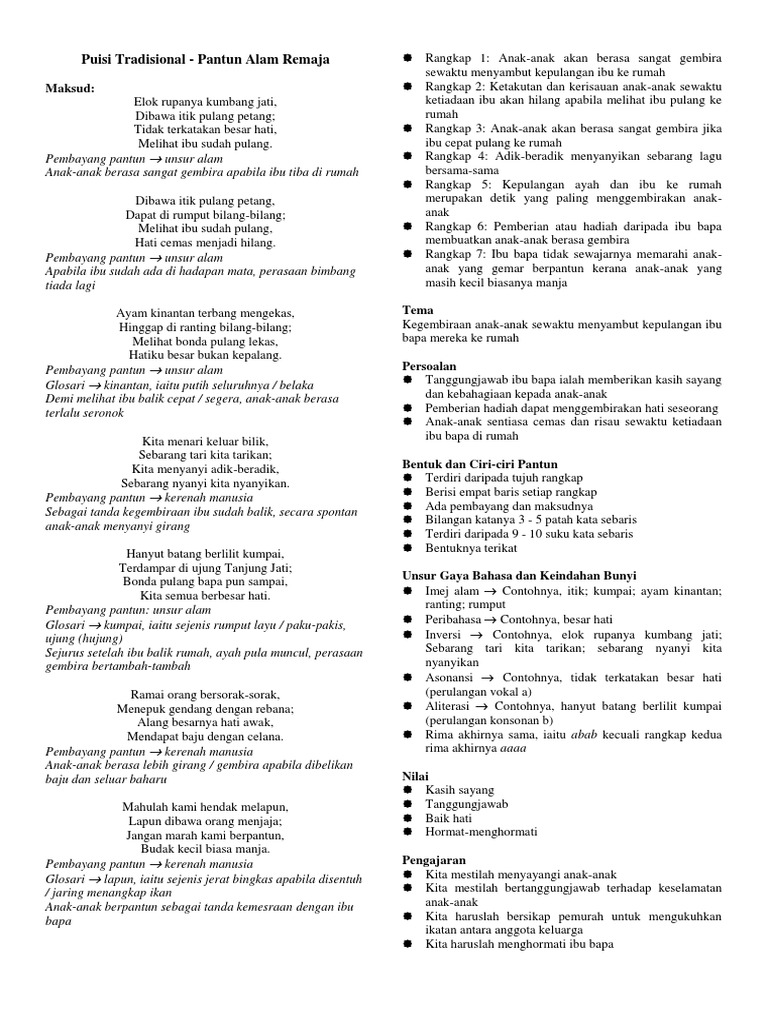 April 19 2012 at 4 45 am cuco deh pantunnya. Julai 31 2012 at 9 03 am bila kmu punya kris bunuh sja ikan hiu bila kmu pandai bhs inggris. Di senja hari yang gerimis. Pengalaman dan pemerhatian tersebut diungkapkan semula dalam baris baris yang walaupun terhad tetapi tidak menjejaskan mesej yang hendak disampaikan.