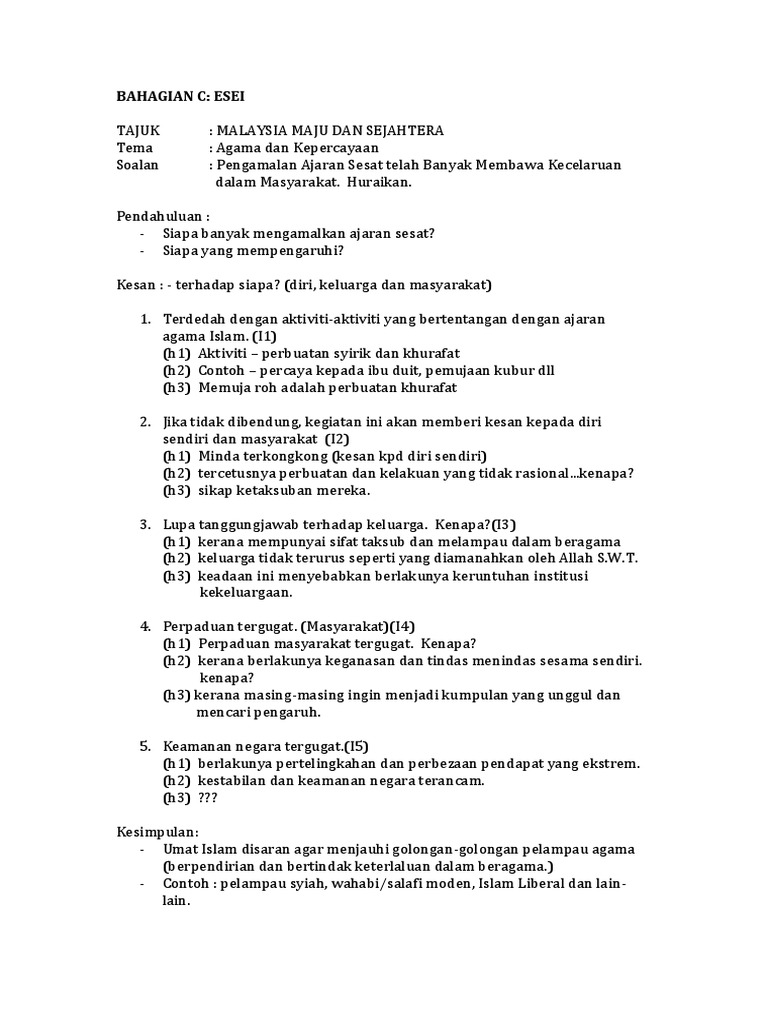 Bahagian C Esei Tema Agama Sem 2