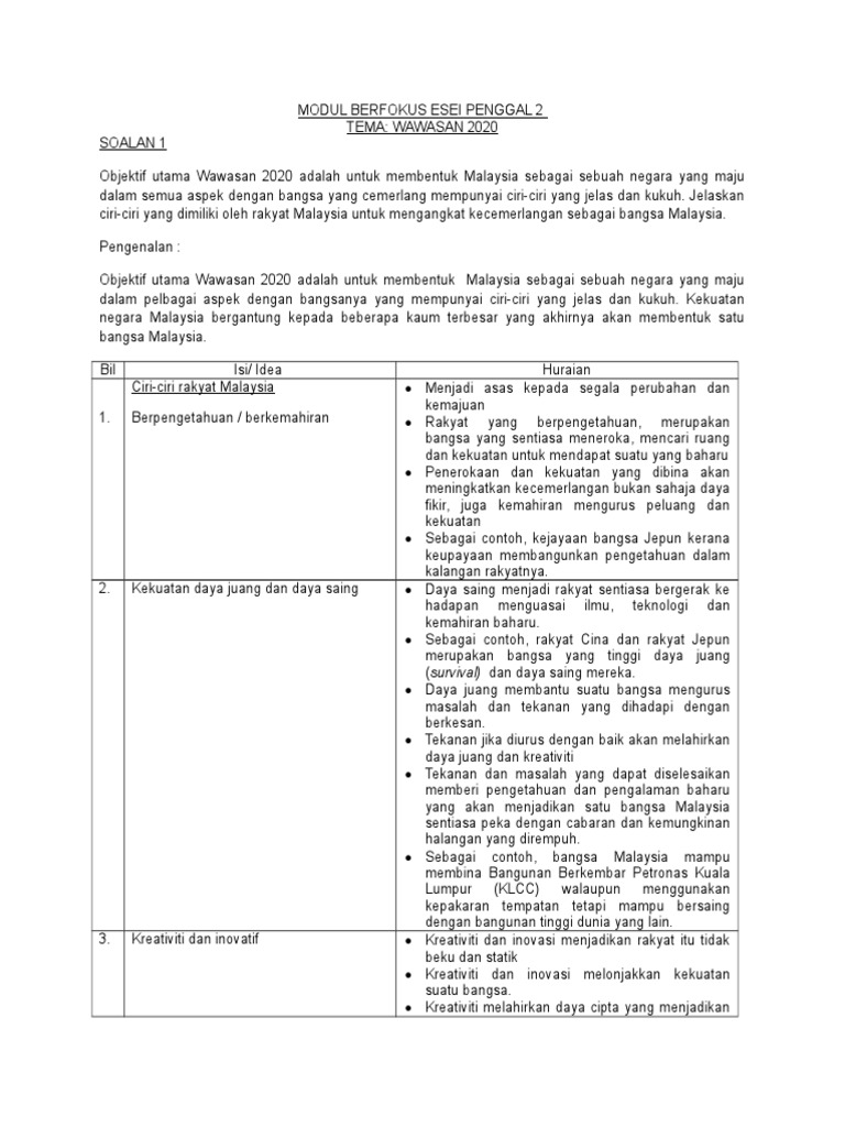 1 Tema Wawasan 2020 Kumpulan Esei Docx