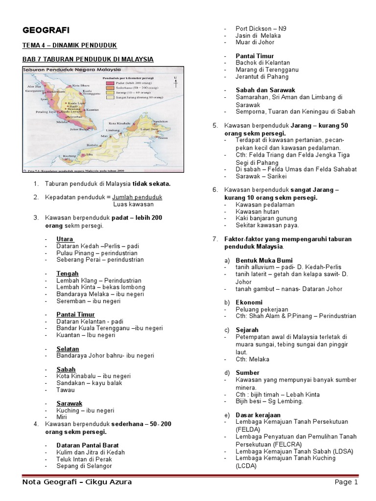 Geografi Tingkatan 2 Bab 7 Taburan Penduduk