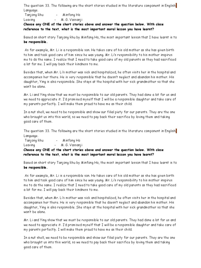 The Question Tanjung Rhu Form 4 Essay