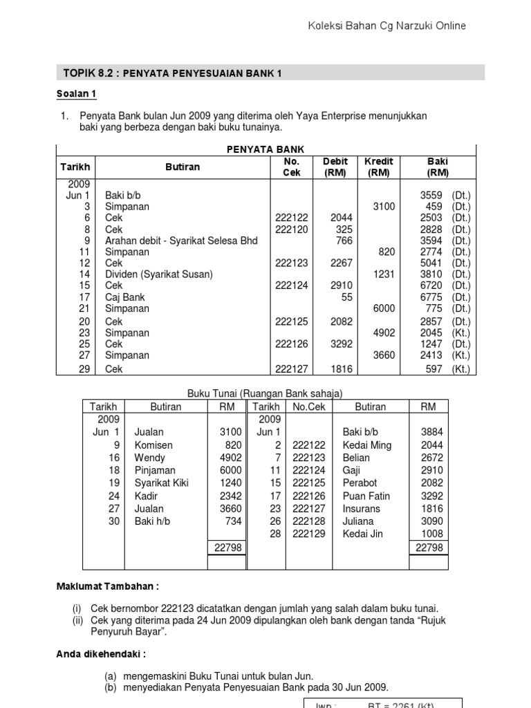 1 1 Penyata Penyesuaian Bank Antara Rekod Buku Dengan Rekod Bank Spm