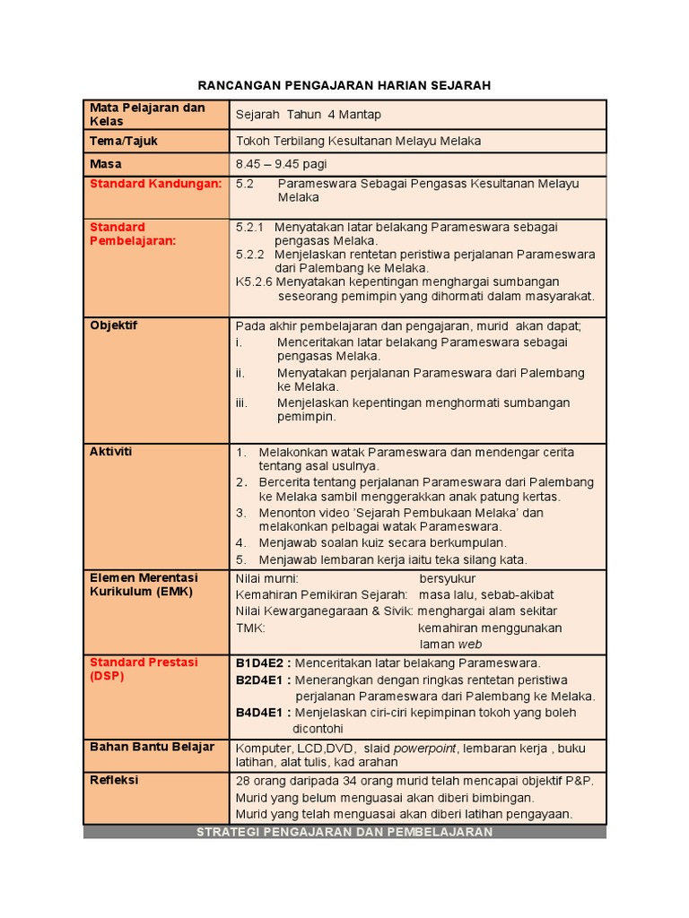 Rph Sejarah Tahun 4 Parameswara Doc