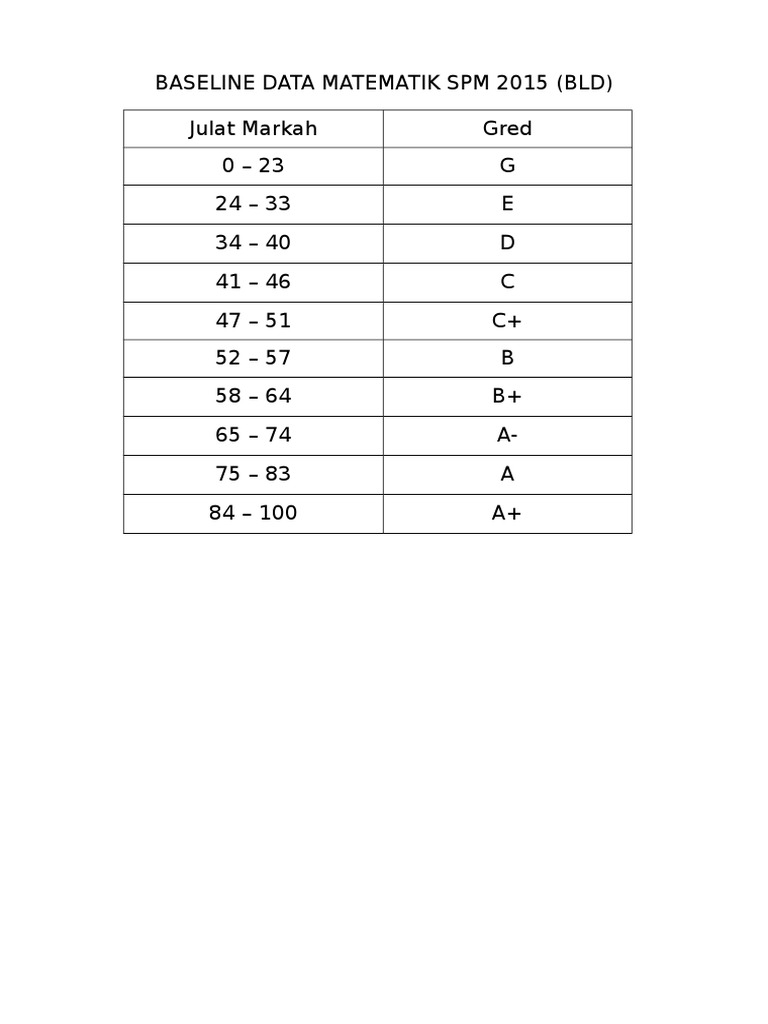 Gred Markah Baseline Spm 2019