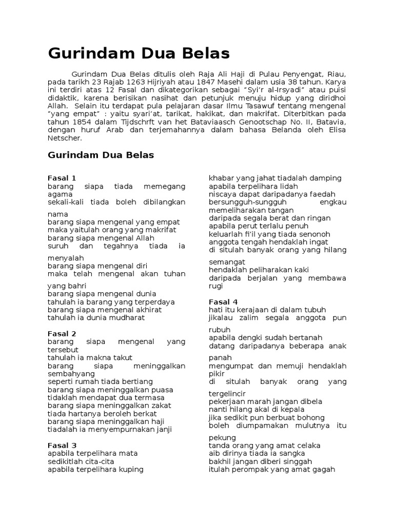 Gurindam 12 Sastra Melayu Riau Yang Hampir Terlupakan Info Dunia Ibu Dan Anak