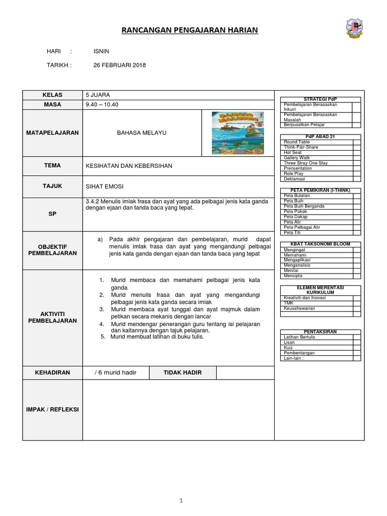 Rancangan Pengajaran Tahunan Bahasa Melayu Kssr Tahun 1 Sk