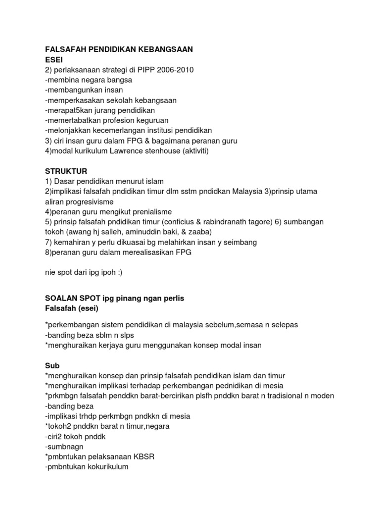 Falsafah Pendidikan Kebangsaan Esei
