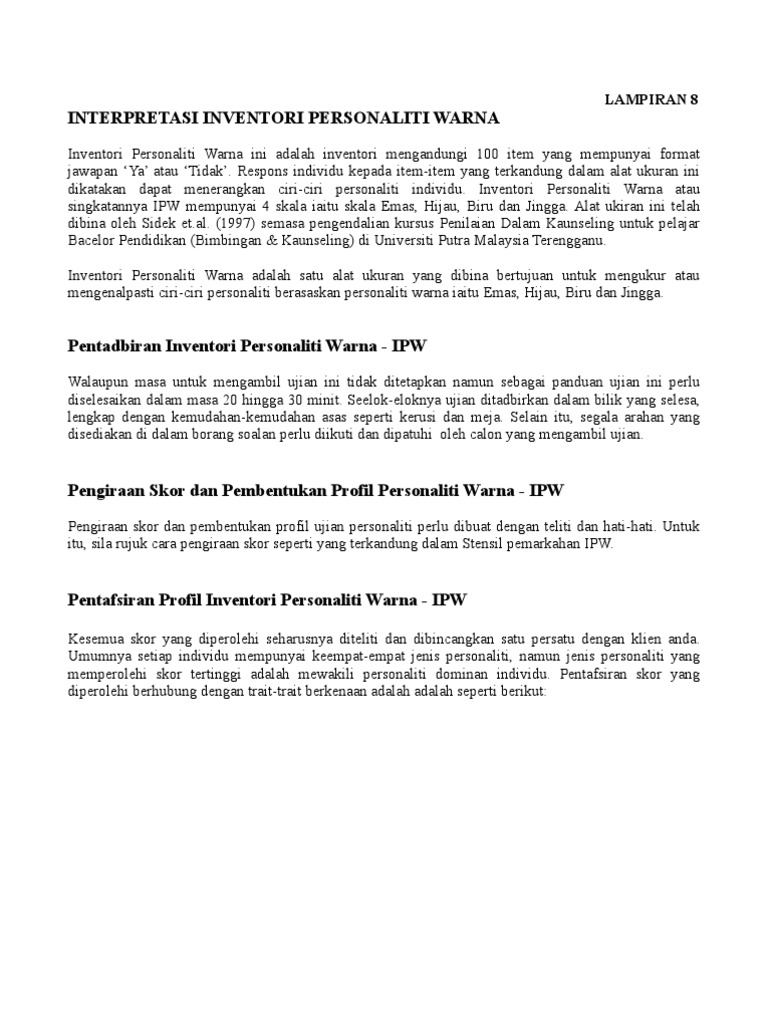 Interpretasi Ipw Colour Personality Test Uitm Studocu