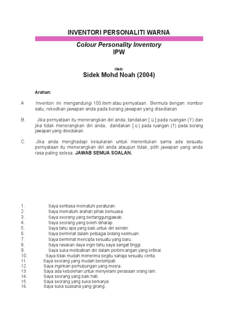 Inventori Personaliti Warna Ipw