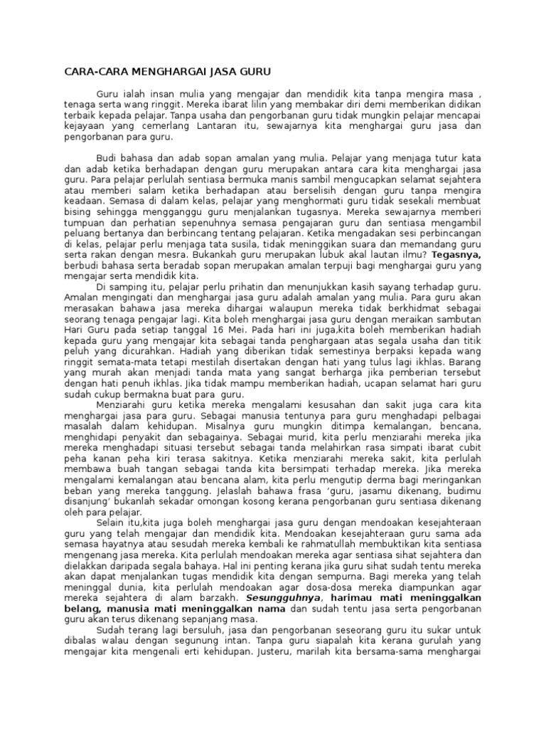 Cara Cara Menghargai Jasa Guru Karangan