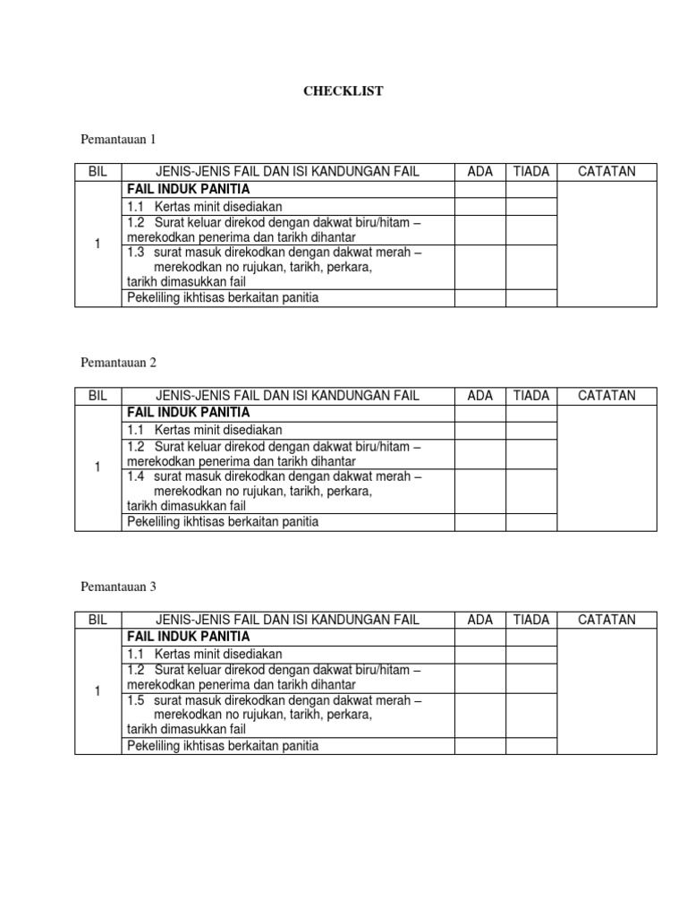 Checklist Pemantauan Fail