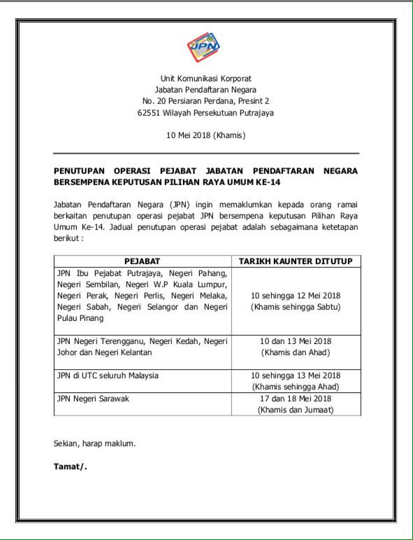 Jpn Malaysia On Twitter Pemberitahuan Penutupan Operasi Pejabat Jpn Bersempena Keputusan Pru Ke 14