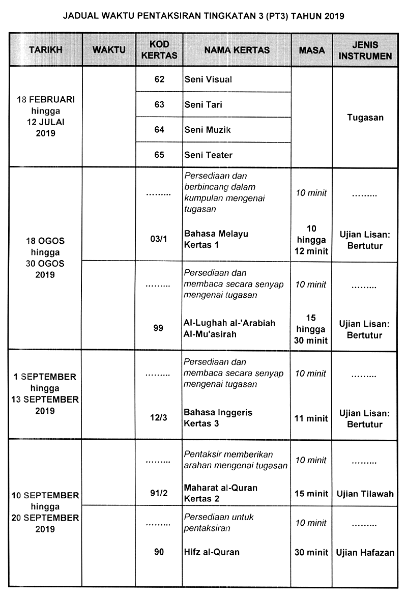 Jadual Waktu Tingkatan 3 Smk Taman Tun Dr Ismail