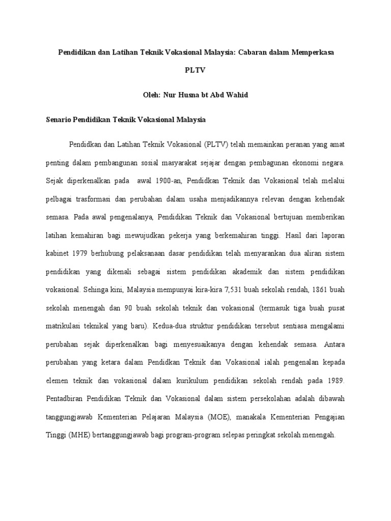 Pdf Pendidikan Teknik Dan Vokasional Dalam Pendidikan Negara Nur Husnina Zawawi Academia Edu