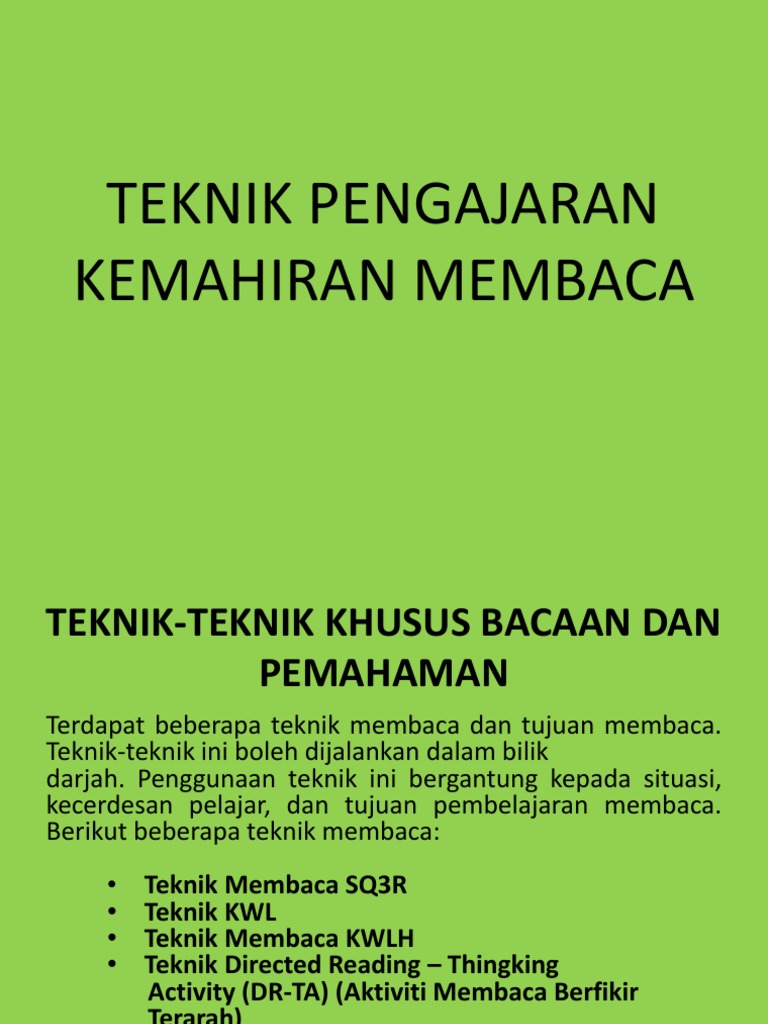 Teknik Pengajaran Kemahiran Membaca