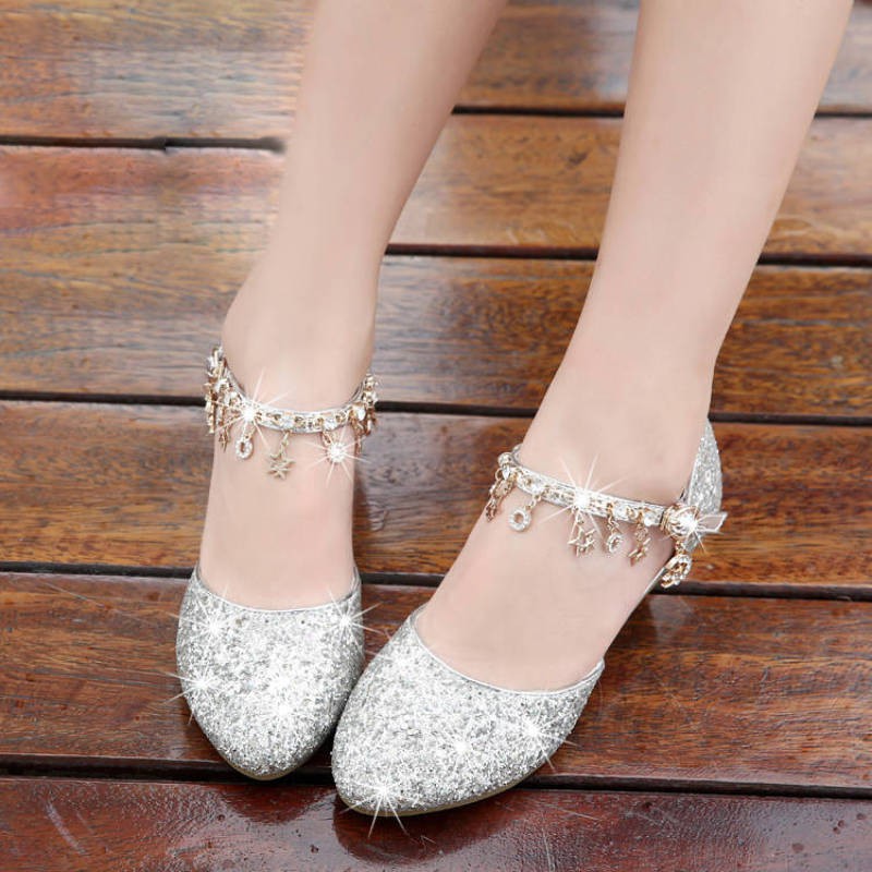 Kasut Wanita Raya 2020 Silver Kasut Princess Frozen High Heels Kasut Raya Budak Perempuan 9 Tahun