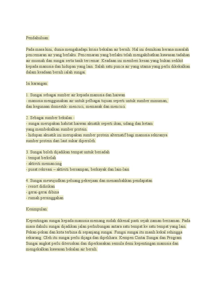Kepentingan Sungai Docx Kepentingan Sungai Sungai Merupakan Anugerah Tuhan Kepada Manusia Sungai Sememangnya Amat Penting Dalam Kehidupan Kita Sejak Course Hero