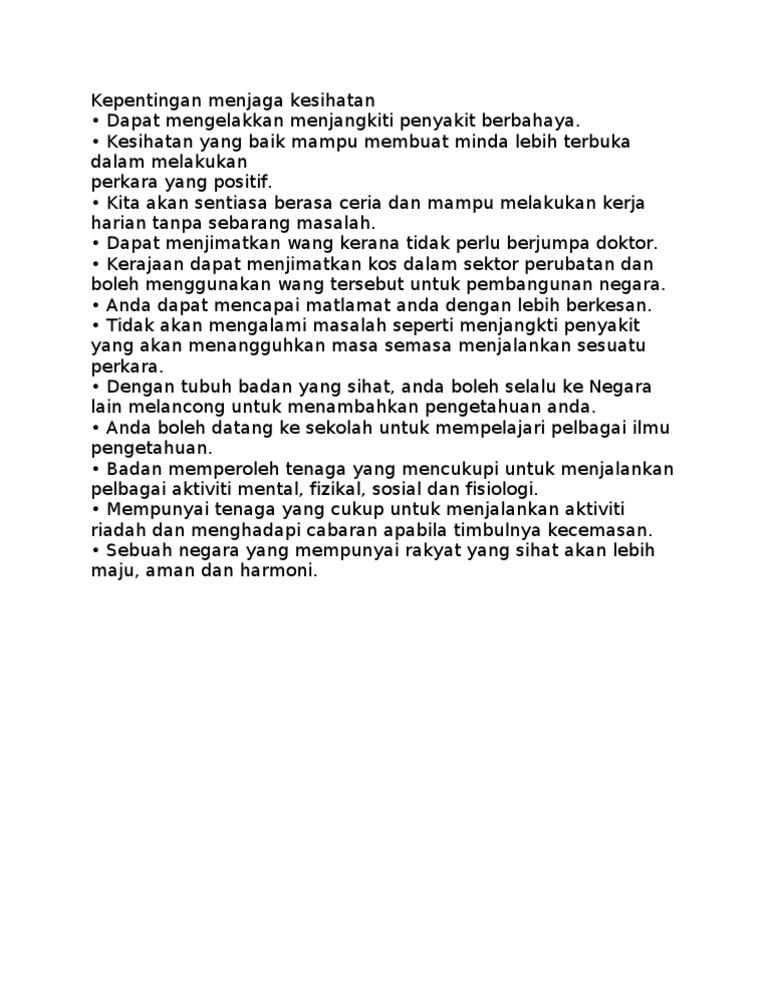 Karangan Kepentingan Menjaga Kesihatan Dan Kebersihan Diri