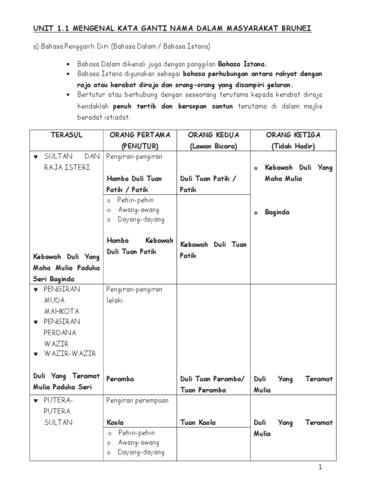 Unit 1 Mengenal Kata Ganti Nama Dalam Masyarakat Brunei