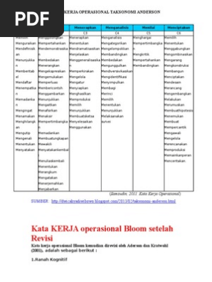 Daftar Kata Kerja Operasional Kko Taksonomy Bloom Pdf