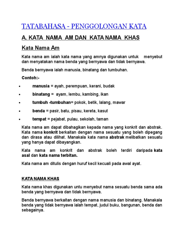 Tatabahasa Penggolongan Kata A Kata Nama Am Dan Kata Nama Khas Kata Nama Am