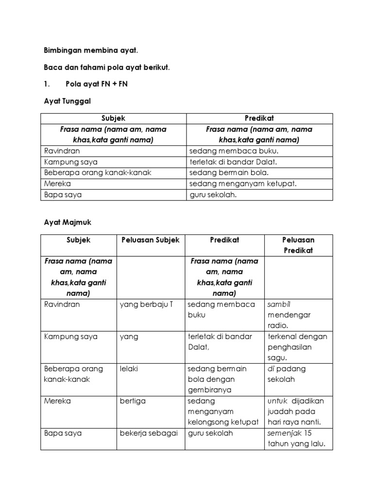 Kata Nama Ayat Majmuk Ayat Tunggal
