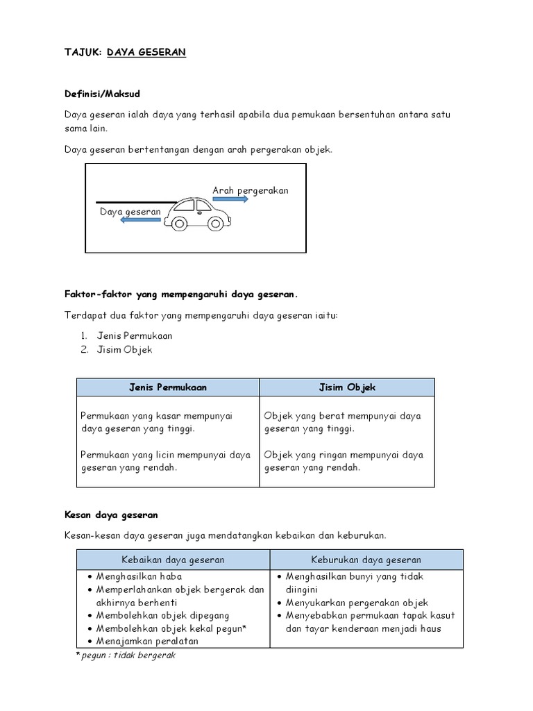 Sains Tahun 4 5 6 Kssr Tahun 6 Daya Geseran