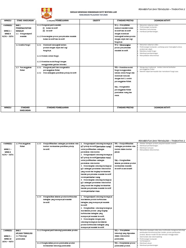 Rpt Rbt T2 2018 Docx Rekabentuk Dan Teknologi U2013 Tingkatan 2 Sekolah Menengah Kebangsaan Setapak Indah Rancangan Pelajaran Tahunan Mingg U 3 Mingg U Course Hero