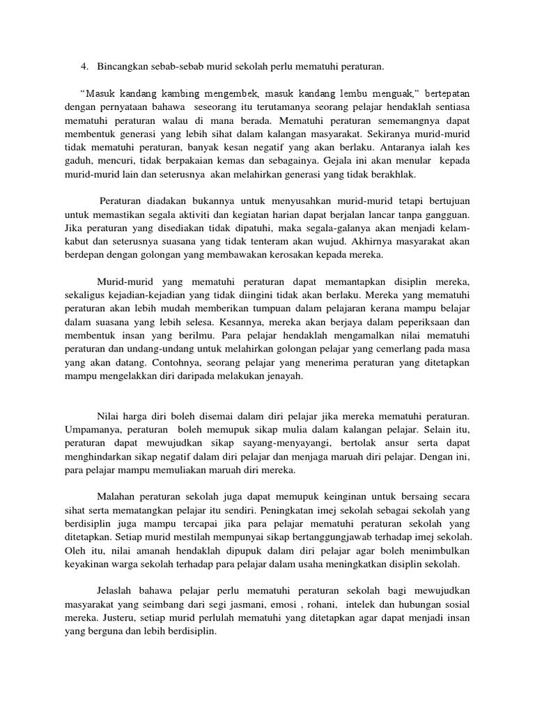 Contoh Karangan Bahagian A Kepentingan Peraturan Di Sekolah