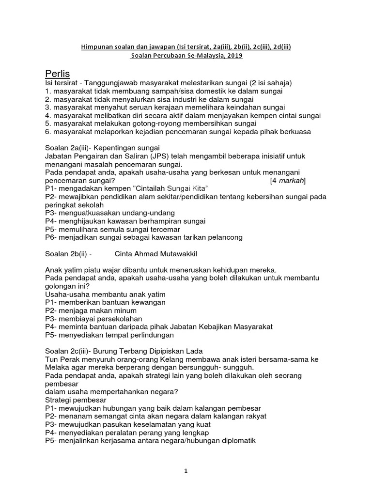 Pdf Cadangan Jawapan K1 Cikgu Ishak Peperiksaan Percubaan Spm Ikihusna Noh Academia Edu