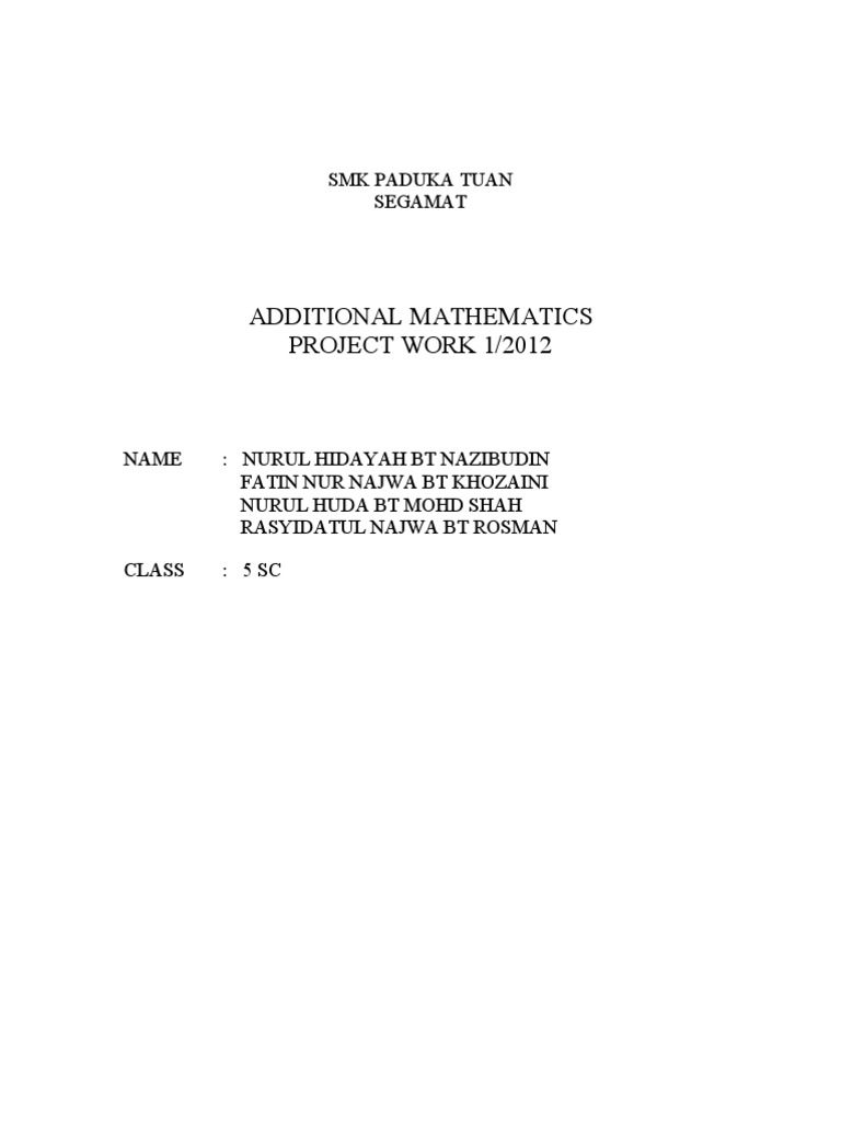 Contoh Jawapan Kerja Projek Matematik Tambahan Pulau Pinang Add Maths Project Work Sample Answer Penang