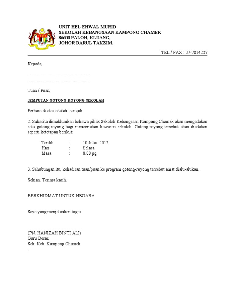 Surat Panggilan Gotong Royong Julai