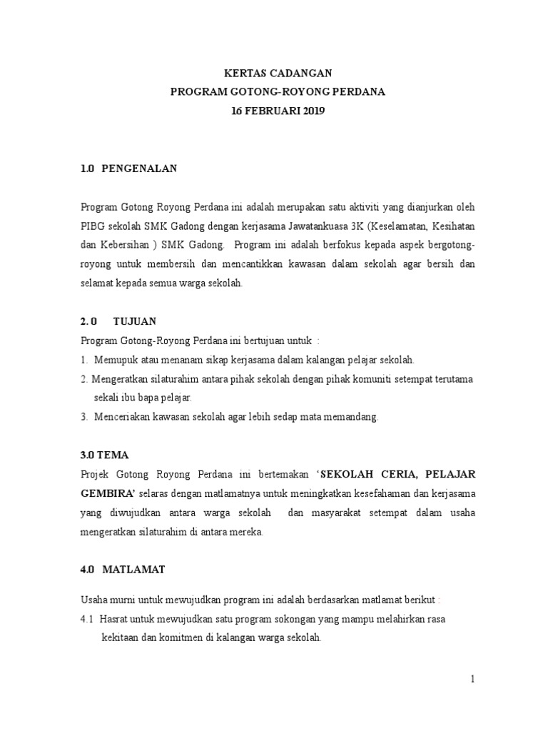 Kertas Kerja Gotong Royong Perdana 2019 Pages 1 8 Text Version Anyflip