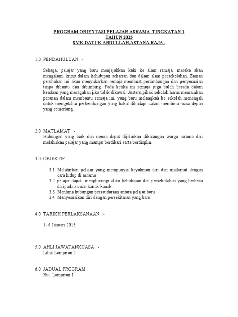Kertas Kerja Orientasi Asrama 2013 Baru Doc
