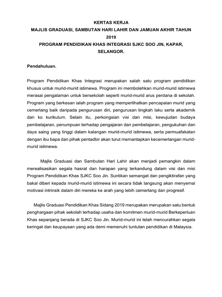 Contoh Kertas Kerja Jamuan Akhir Tahun Pendidikan Khas Jawat Kosong