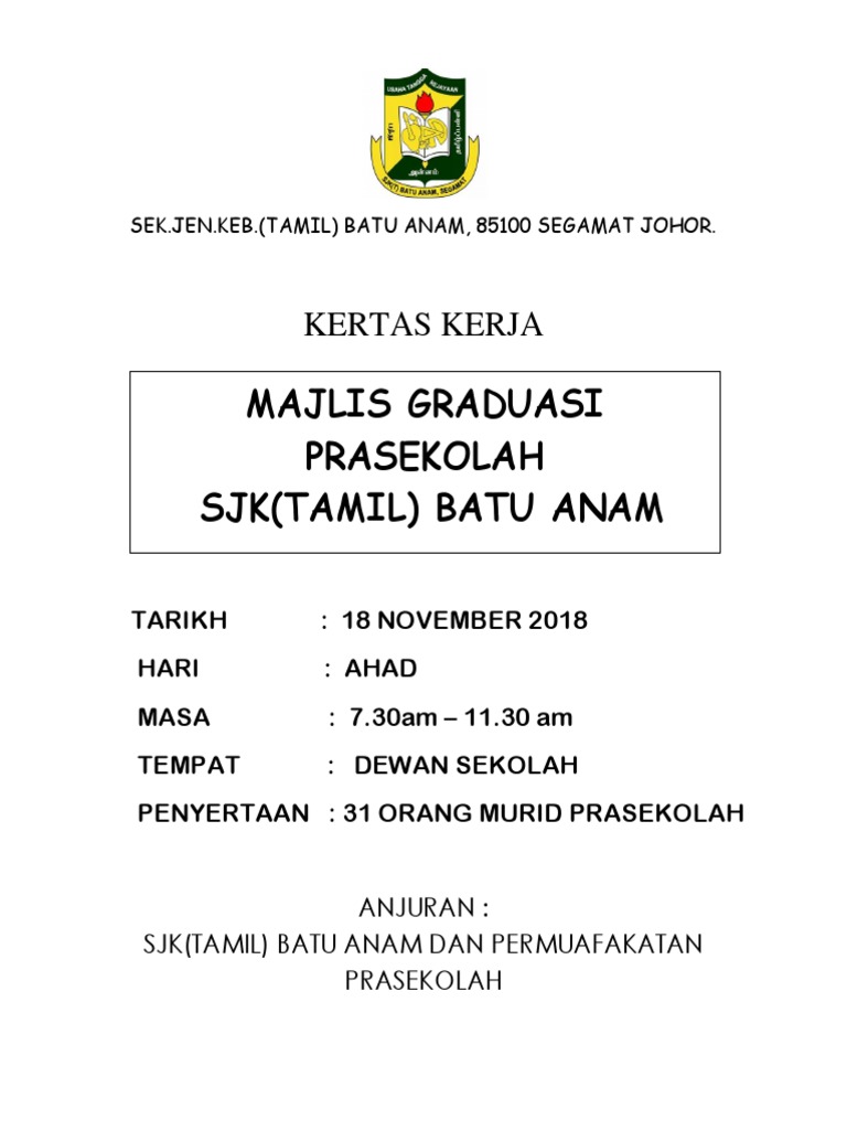 Kertas Kerja Hari Graduasi Prasekolah Sjk T Sungai Besi 57100 Kuala Lumpur